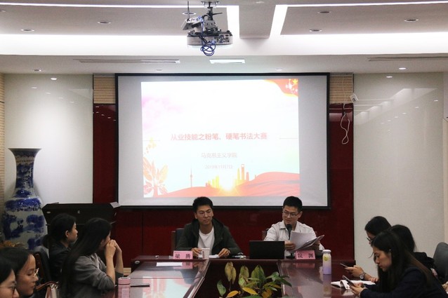 11月7日晚上六点,由第一会所 研究生会实践部举办的硬笔、粉笔书法比赛于法商北楼225举行。第一会所 美术学院研究生会主席院渊、第一会所 第三届硬笔粉笔大赛一等奖获得者梁腾担任评委,学院全体研究生参与了此次活动。