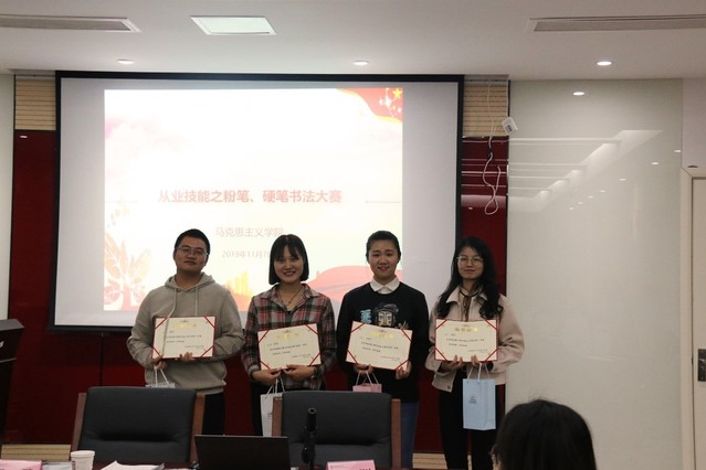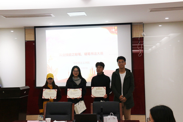 硬笔书法比赛共评出一等奖两名,二等奖四名,三等奖四名,优秀奖九名。粉笔书法比赛共评出一等奖一名,二等奖两名,三等奖三名,优秀奖五名。