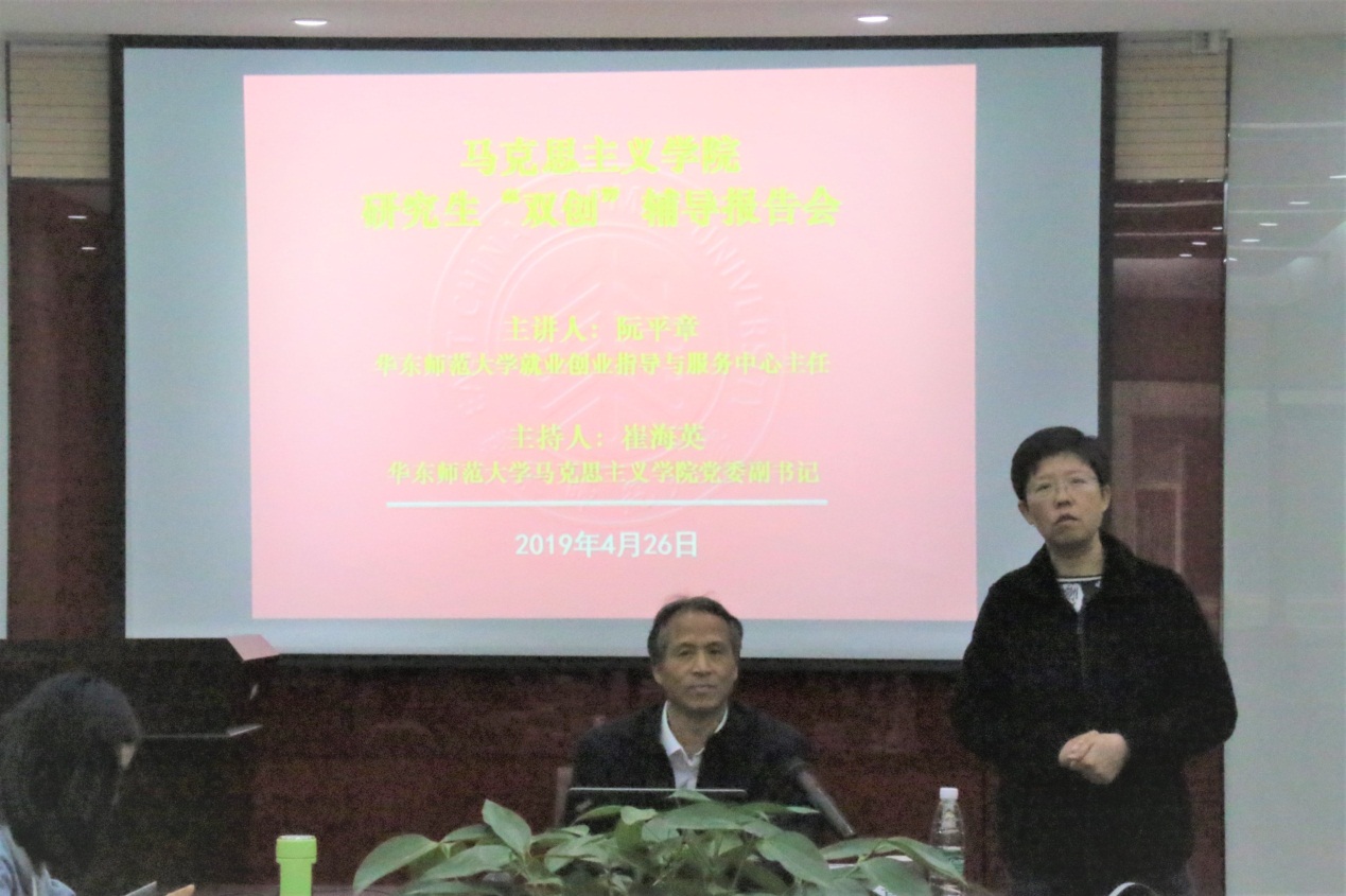 为了使同学们充分了解创新创业活动,激励大家打开思路,尝试多种就业渠道,2019年4月26日下午1时,第一会所 于法商北楼225举办了“双创”辅导报告会,邀请第一会所 就业创业指导与服务中心主任阮平章老师主讲,报告会由学院党委副书记崔海英主持,学院研究生参加了此次活动。