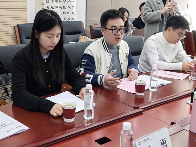 会议第二阶段为交流讨论环节,中共党史系教工党支部组织委员樊士博、本科生党支部书记解涛、马克思主义理论系研究生党支部书记贾宇翔分别就党支部建设过程中的创新举措与实践困惑积极发言。