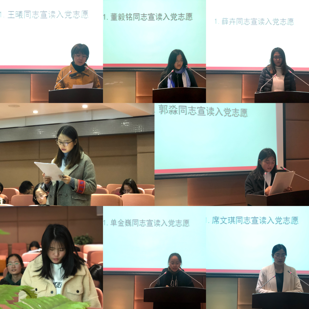 会议严格按照党章接收预备党员的流程进行。分别就“董毅铭、王曦和薛卉”、“席文琪、郭淼、单金巍和白玉”是否按期转为预备党员进行讨论和表决。会上,按照逐个讨论逐个表决原则,董毅铭等七位同志分别宣读了自己的入党志愿书,详细汇报了自身在思想方面、工作方面、学习方面以及生活方面的表现,同时指出自身需要改进的不足之处,表达了自己加入中国共产党的坚定决心。之后,七位同志的入党介绍人分别就其在在校期间的教育和考察情况作了总结发言,与会党员也结合七位同志的思想汇报和入党申请书及其平时的了解充分发表意见。最后,党支部正式党员以无记名投票方式进行表决,一致同意董毅铭等七位同志转为预备党员。