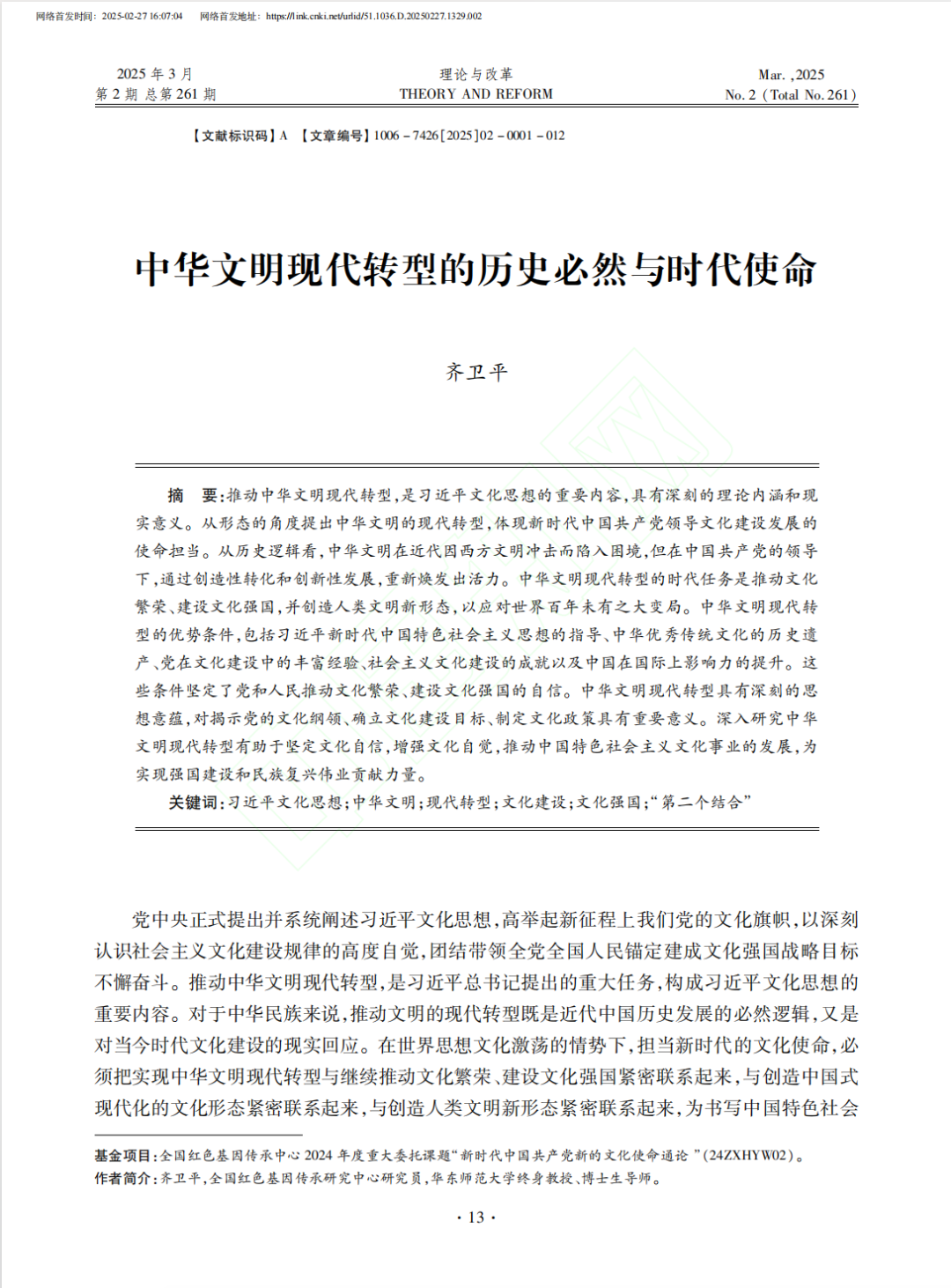 理论与改革|齐卫平:中华文明现代转型的历史必然与时代使命