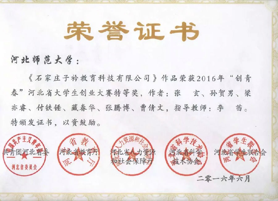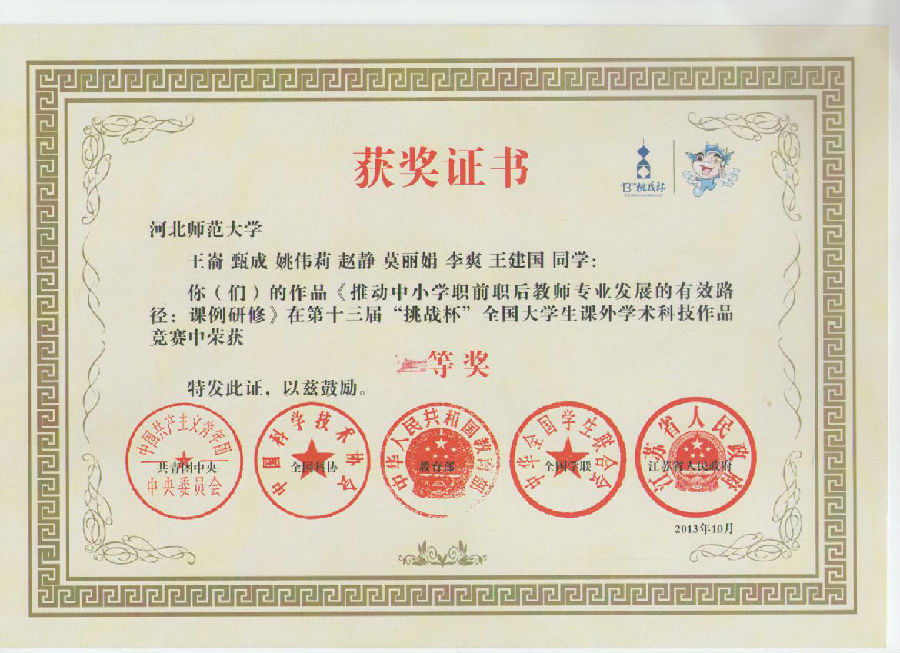 赵 静 贾晓宇 张 锦 赵 霞 尹桂敏 | 2012级 | 2015年 | 河北省特等奖 | 省教育厅 |