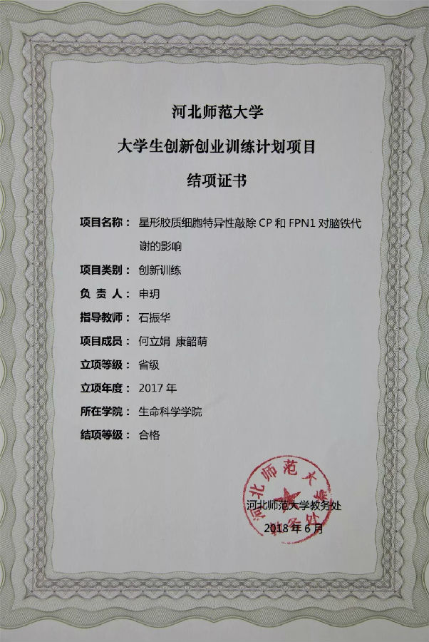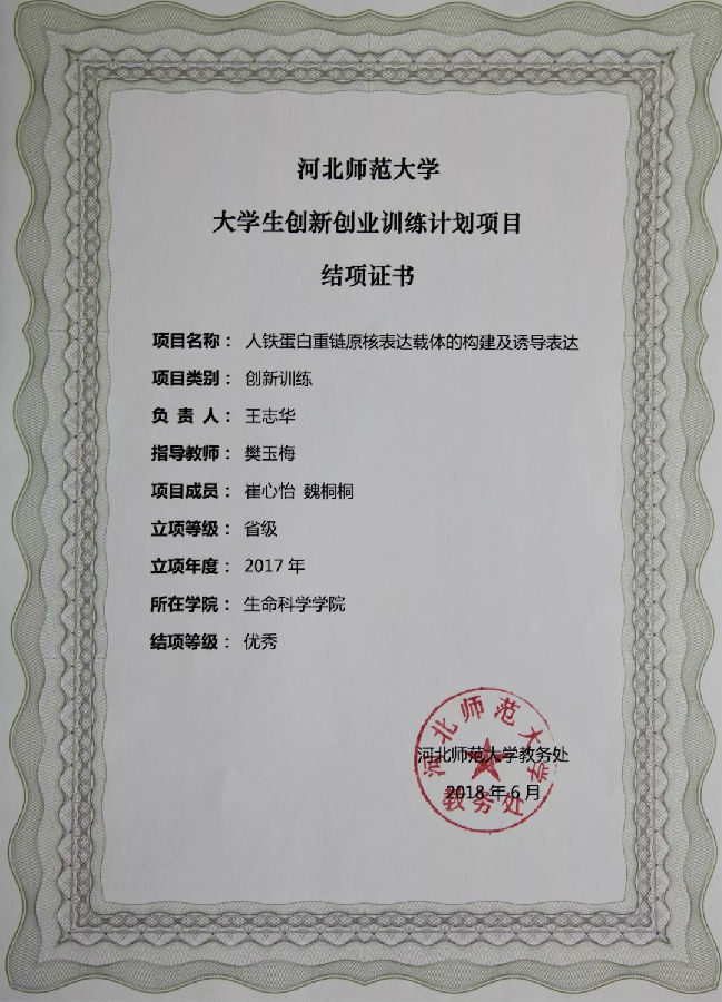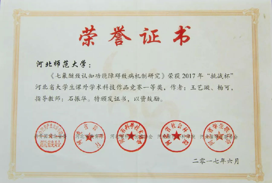 周敏,王森杨,谷瑶瑶 | 2012级 | 2015年 | 河北省二等奖 | 省教育厅 |