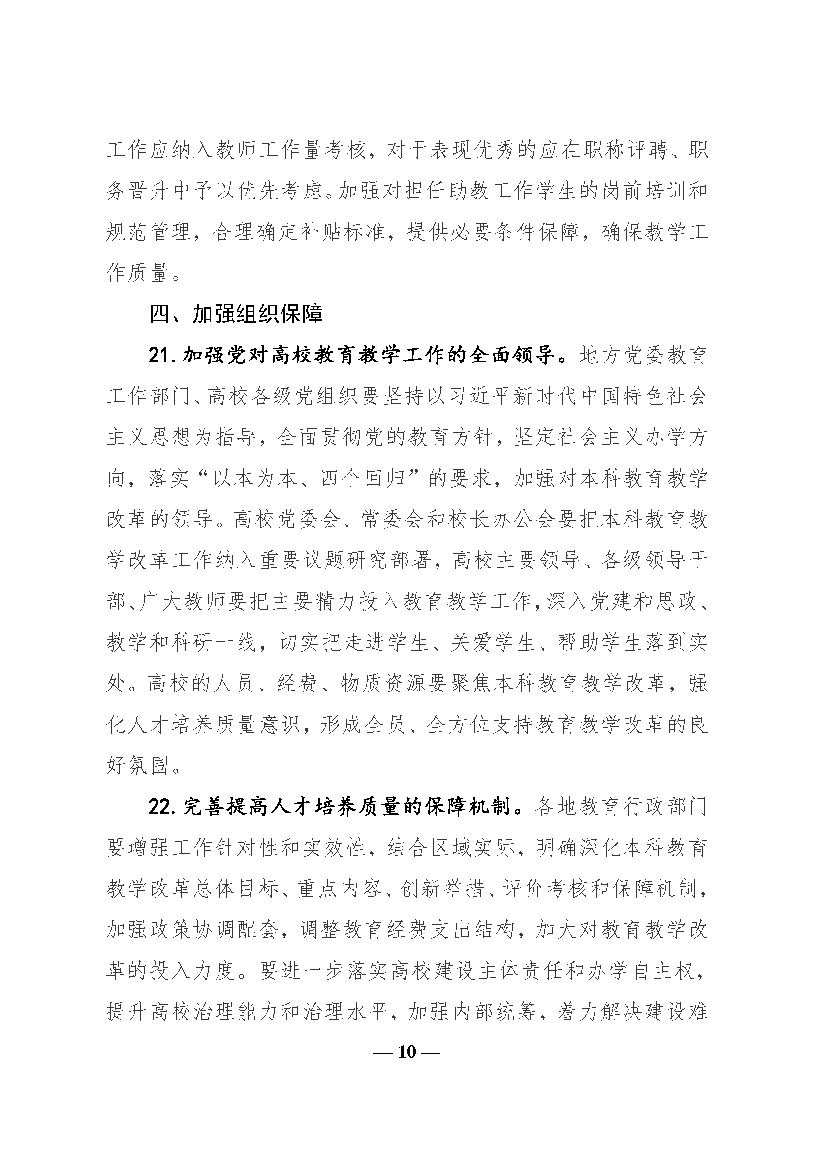 教育部关于深化本科教育教学改革全面提高人才培养质量的意见(教高〔2019〕6号-2019.10.pdf