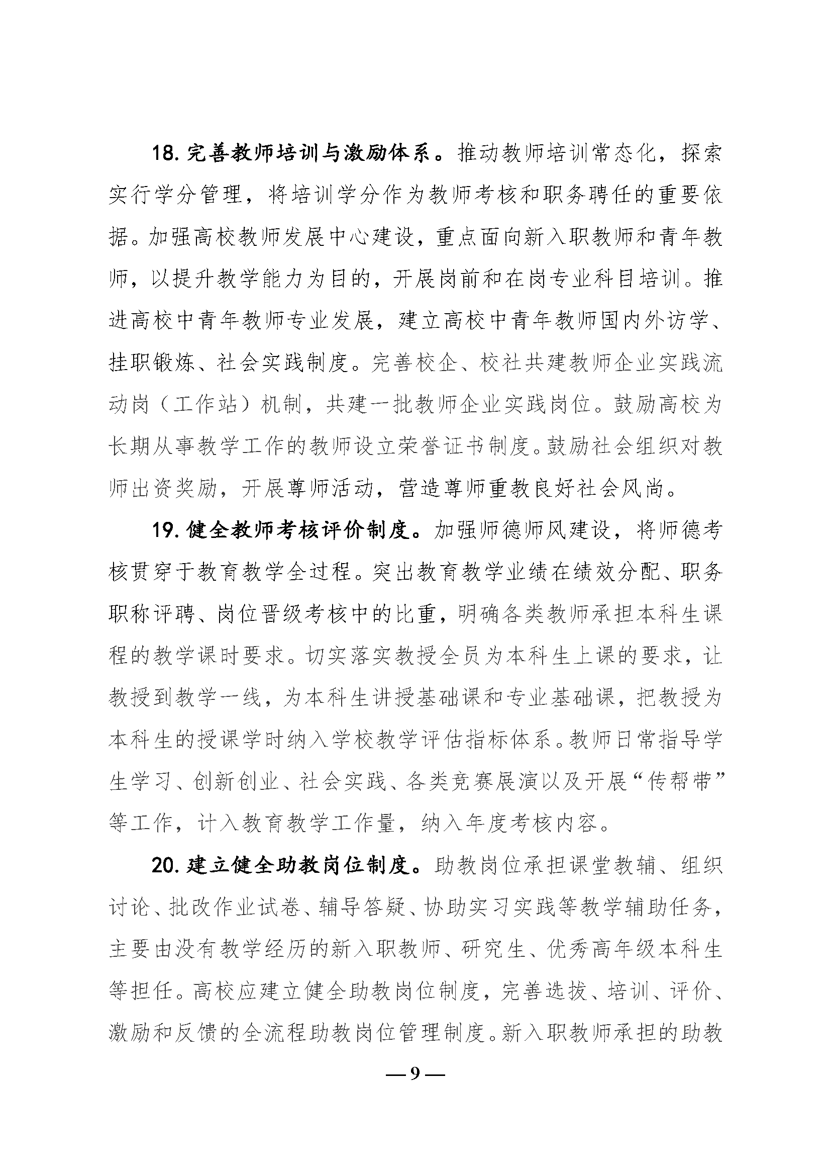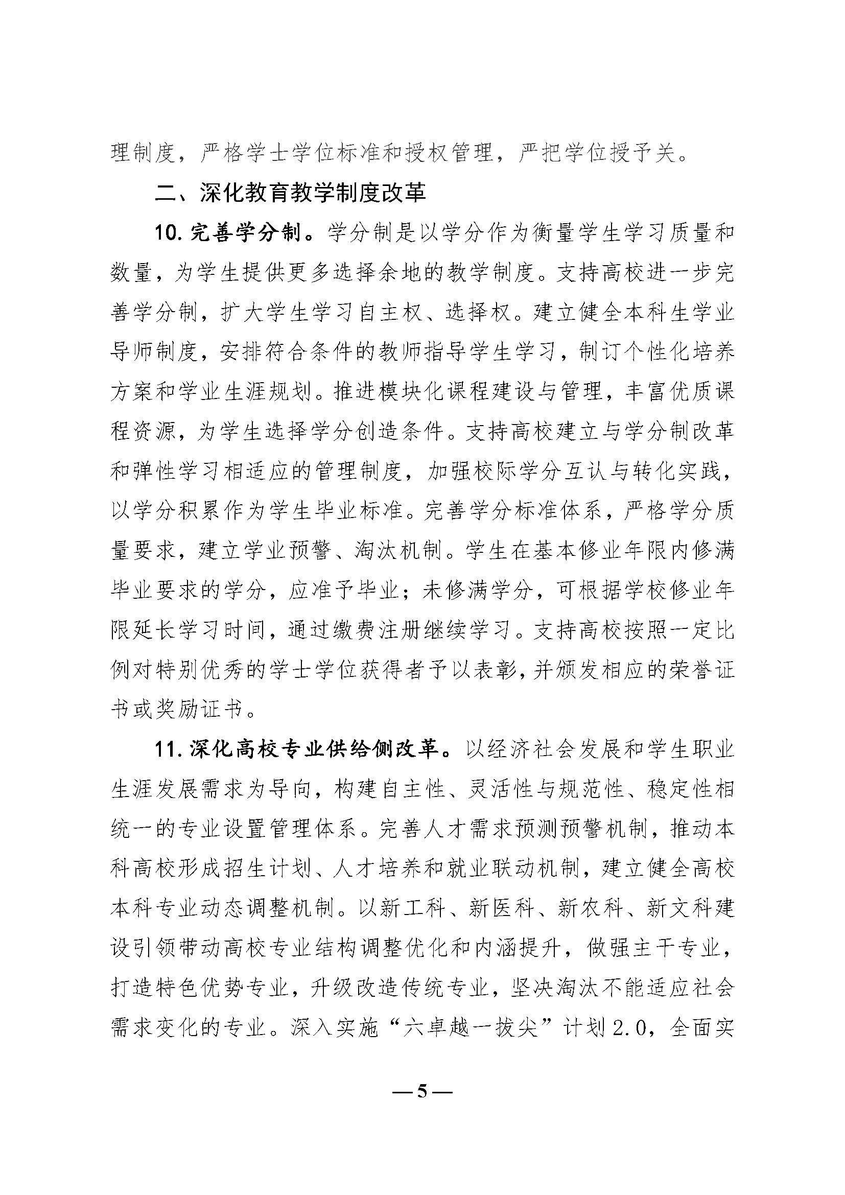 教育部关于深化本科教育教学改革全面提高人才培养质量的意见(教高〔2019〕6号