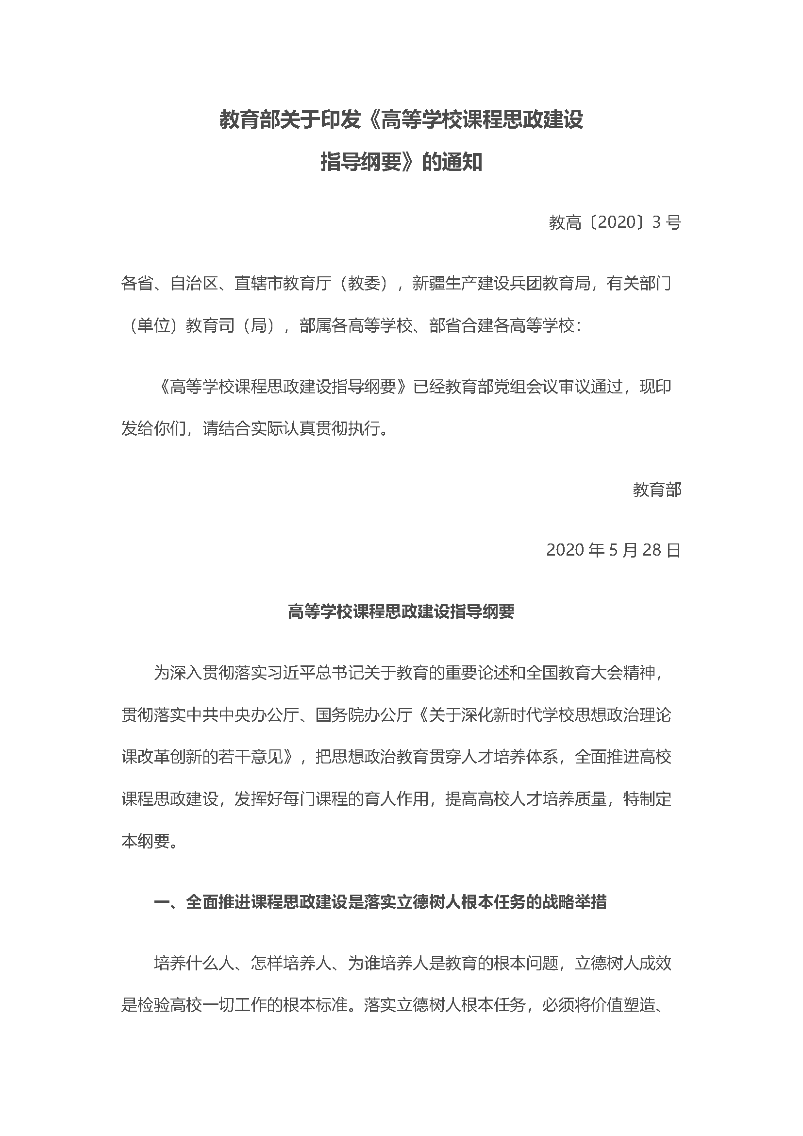 教育部关于印发《高等学校课程思政建设指导纲要》的通知(教高〔2020〕3号-2020.5.pdf