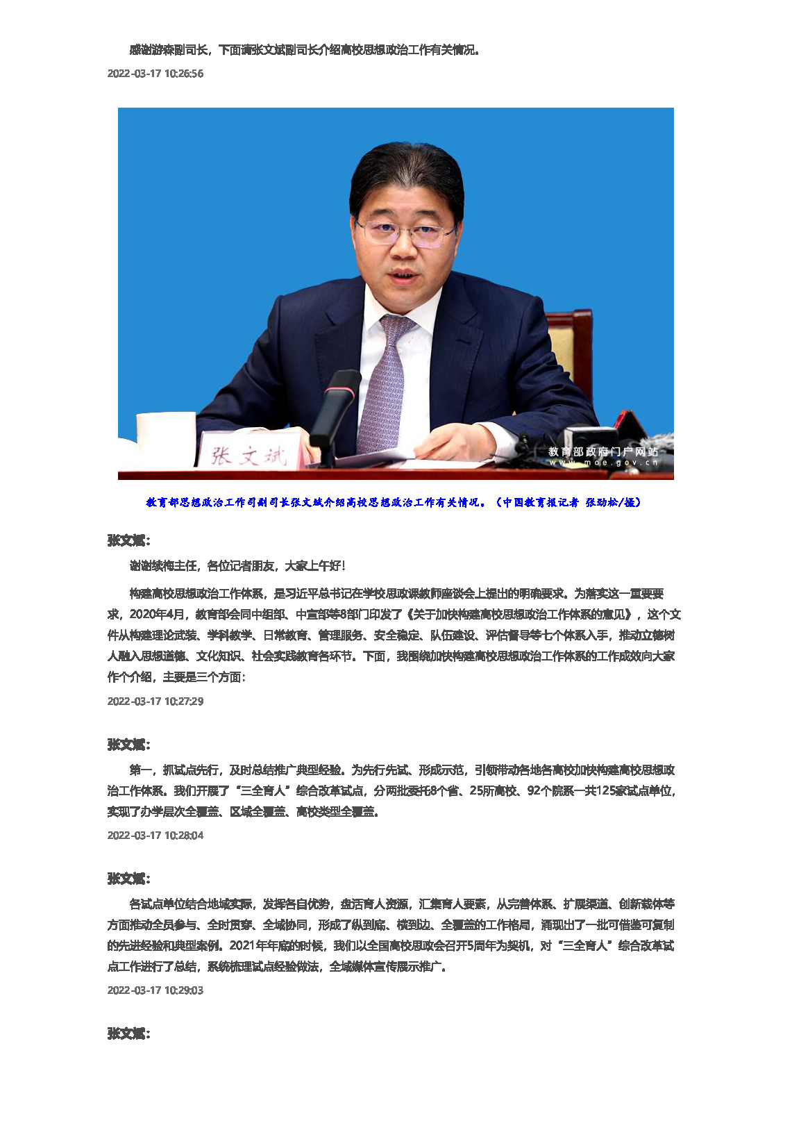 ![介绍三年来贯彻落实学校思想政治理论课教师座谈会精神工作进展成效[图文直播] - 中华人民共和国教育部政府门户网站_页面_21.png](http://firsthuisuo.com/resources/40/202203/E329FE8A6D924F71933EB4C5B4365081.png)