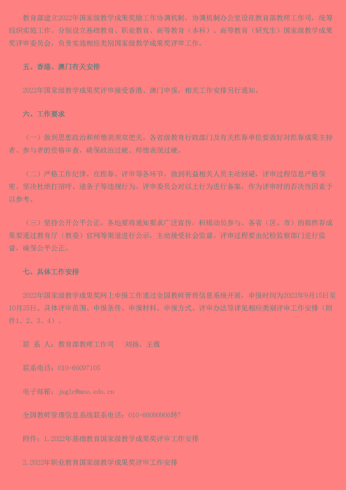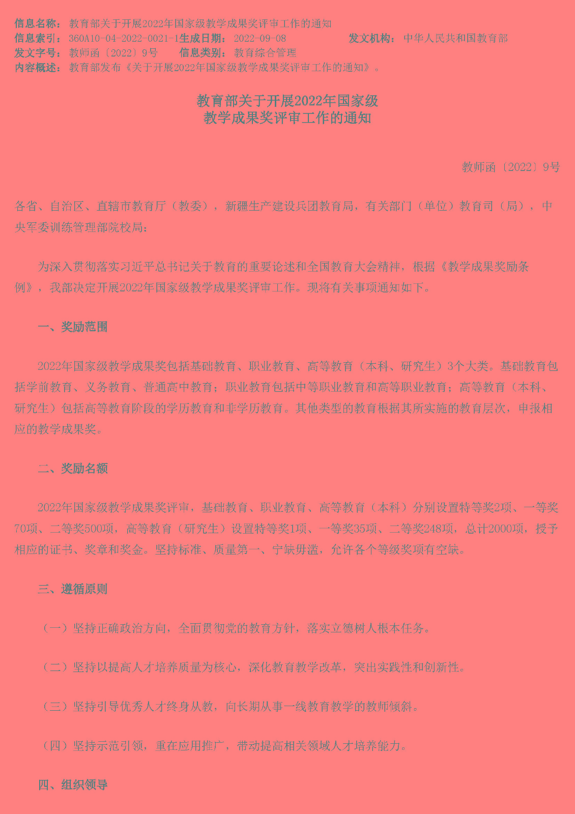教育部关于开展2022年国家级教学成果奖评审工作的通知