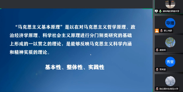 马克思主义理论系龚咏梅副教授用Doing、Having、Being三个关键词,点出马克思主义基本原理学科做何事、有何物,以及培养什么样的人。龚老师通过分析马克思主义的基本原理与研究范畴、整体逻辑与价值旨归以及马克思主义的实践性与时代性,说明了马克思主义基本原理二级学科的内涵;通过关注理论意识、现实意识、问题意识、人文关怀视角,阐述了学习马克思主义所需要具备的素质。最后龚老师借用E-C-N-U四个字母,进一步拓展其含义,指明了马克思主义基本原理学科培养出的人才质量。